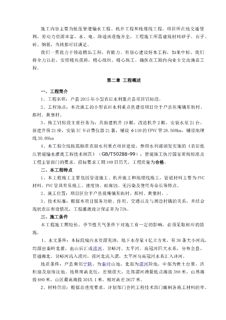 [陕西]小型农田水利管道施工、机井施工和地埋线施工施工组织设计.doc