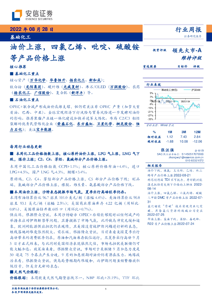 安信证券:基础化工行业周报:油价上涨,四氯乙烯、吡啶、硫酸铵等产品价格上涨.pdf