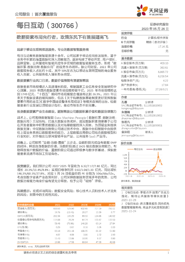 天风证券:每日互动(300766)-数据要素布局先行者,政策东风下有望展翅高飞.pdf