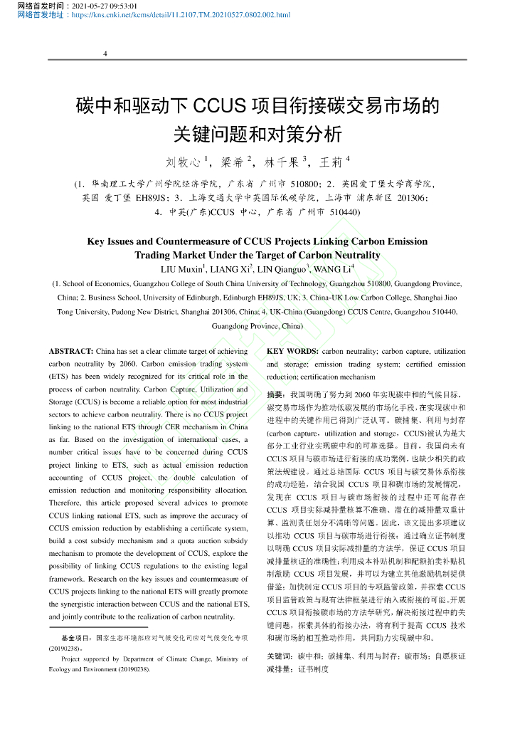 碳中和驱动下CCUS项目衔接碳交易市场的关键问题和对策分析.pdf