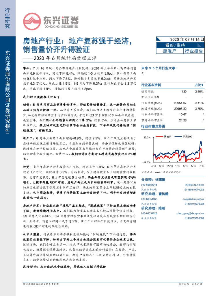 东兴证券:房地产行业2020年6月统计局数据点评:地产复苏强于经济,销售量价齐升得验证.pdf