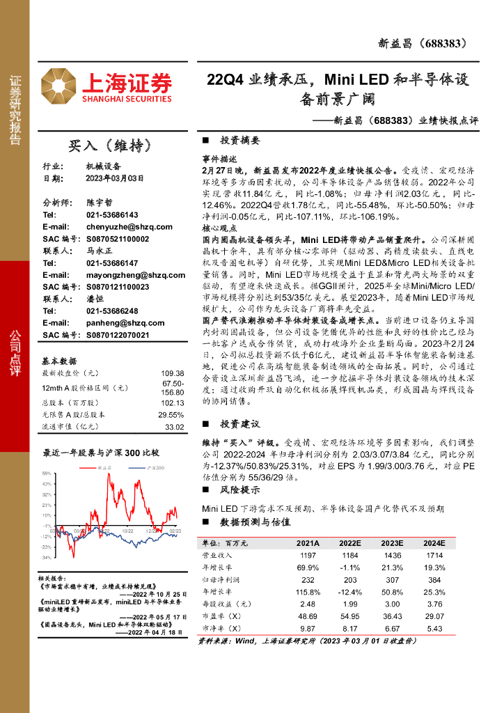 上海证券:新益昌(688383)-业绩快报点评:22Q4业绩承压,Mini LED和半导体设备前景广阔.pdf