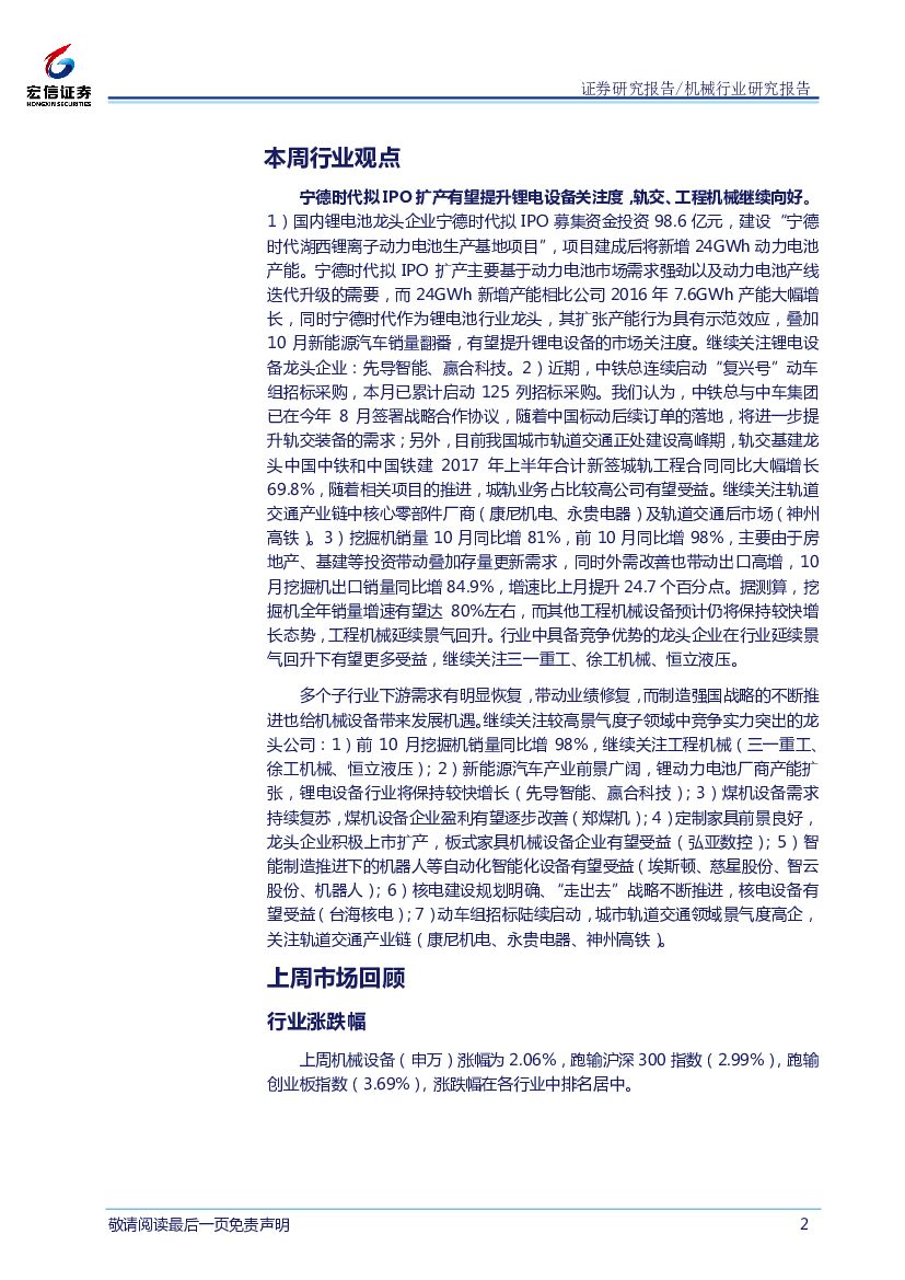 宏信证券:机械行业周报:宁德时代拟IPO扩产有望提升锂电设备关注度,轨交、工程机械继续向好.pdf
