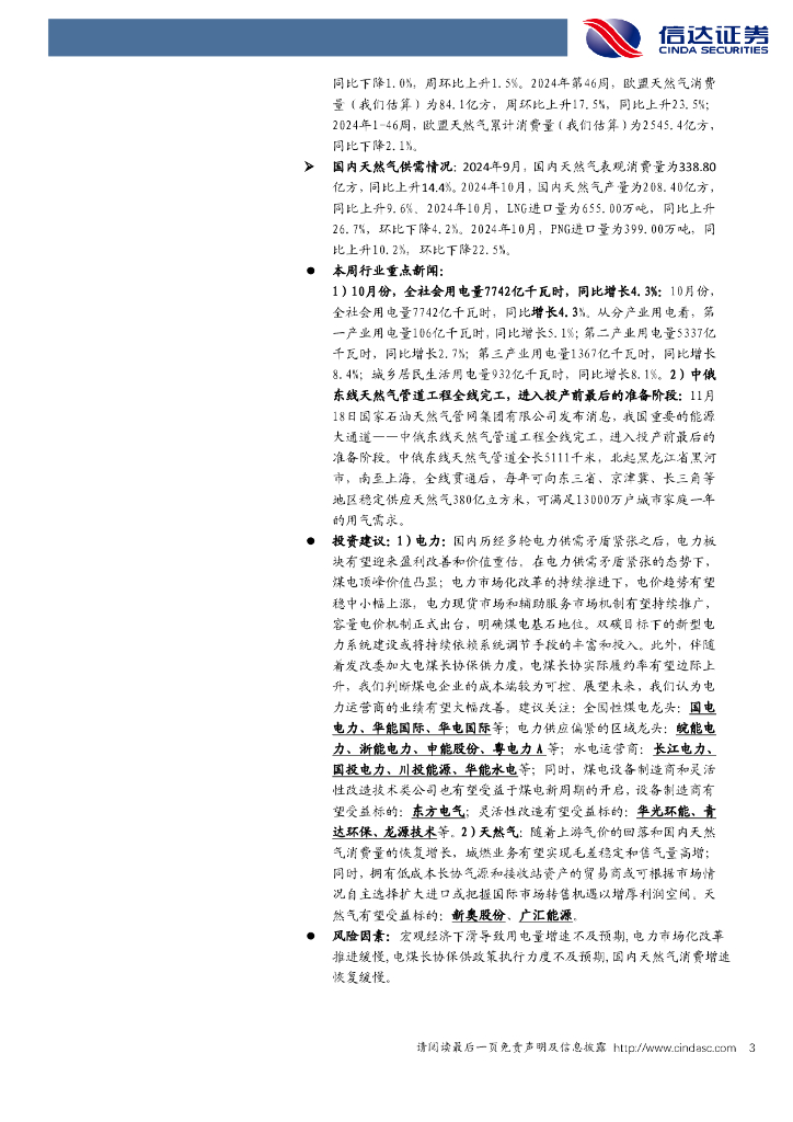 信达证券:公用事业—电力天然气周报:10月全社会用电量同比增长4.3%,欧美气价周环比上涨.pdf