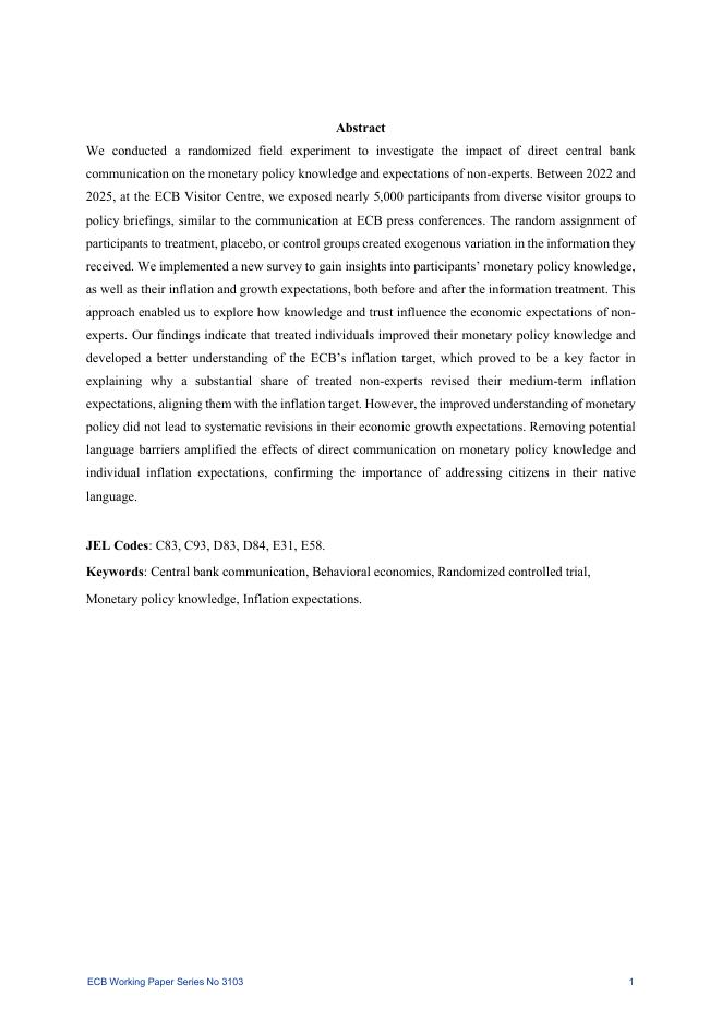 欧洲央行:央行与非专家的沟通:来自大规模实地实验的见解(英文版).pdf