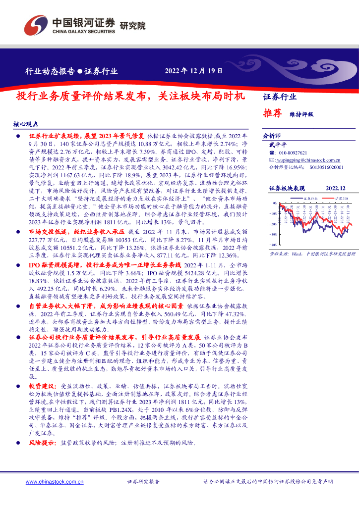 中国银河:证券行业行业动态报告:投行业务质量评价结果发布,关注板块布局时机.pdf
