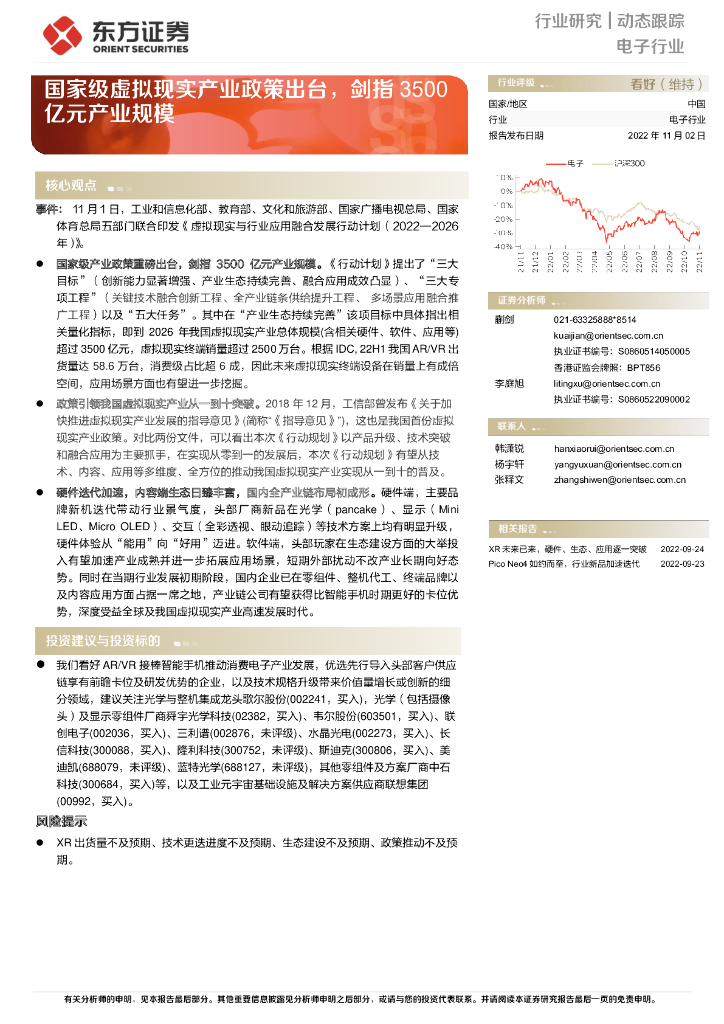 东方证券:电子行业动态跟踪:国家级虚拟现实产业政策出台,剑指3500亿元产业规模.pdf