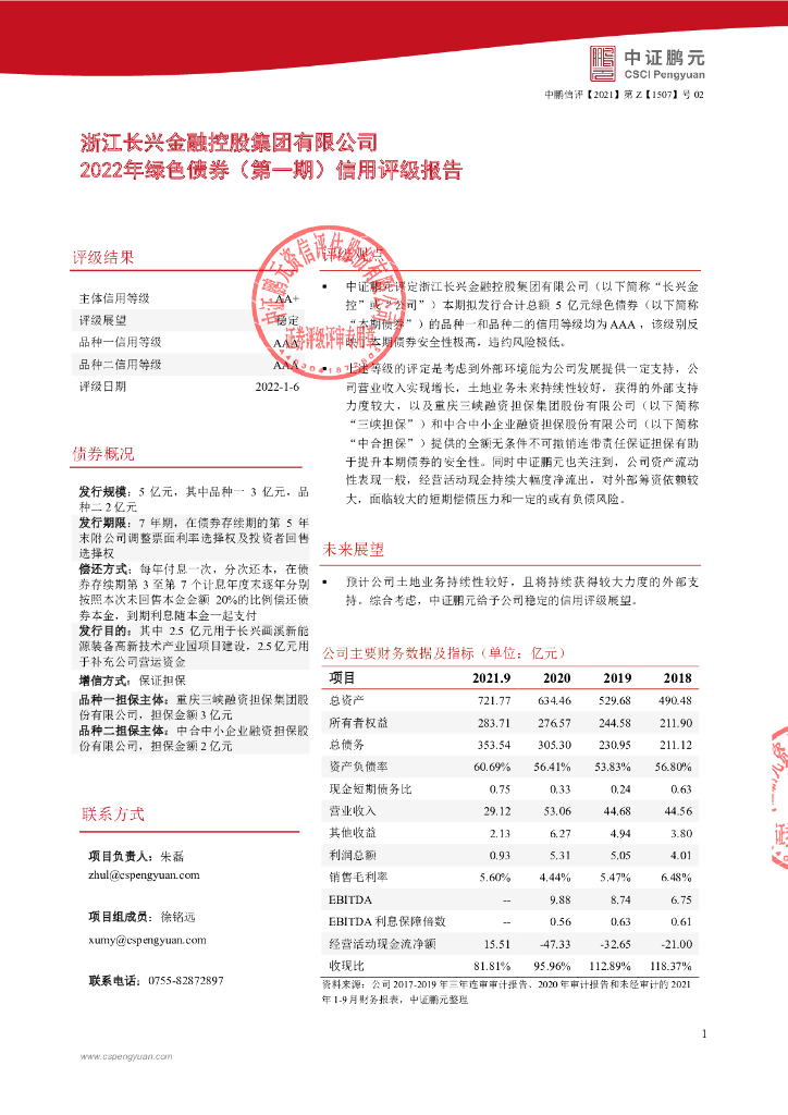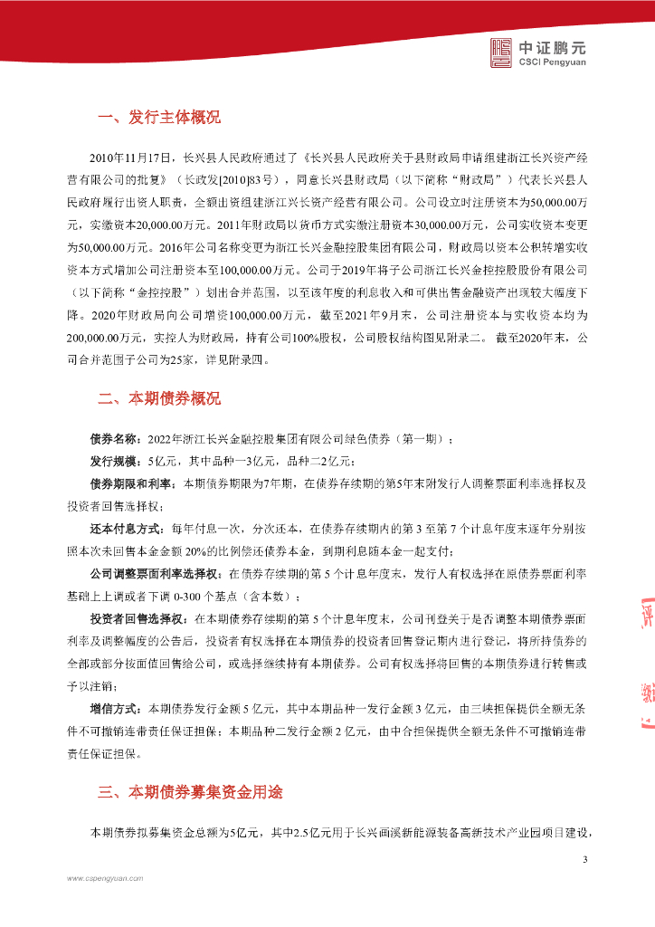 鹏元:浙江长兴金融控股集团有限公司2022年绿色债券(第一期)信用评级报告及跟踪评级安排.pdf