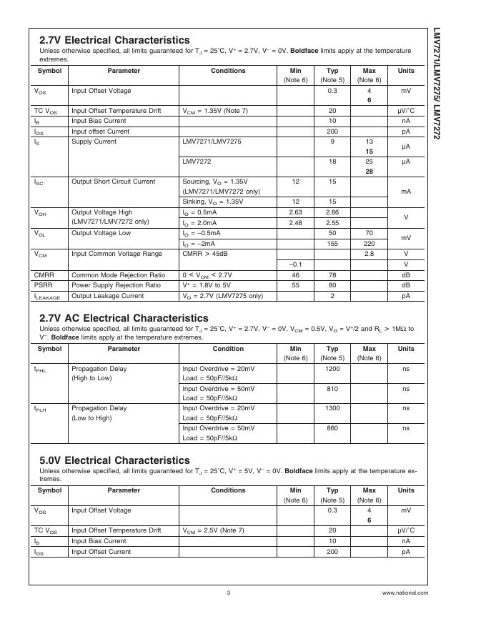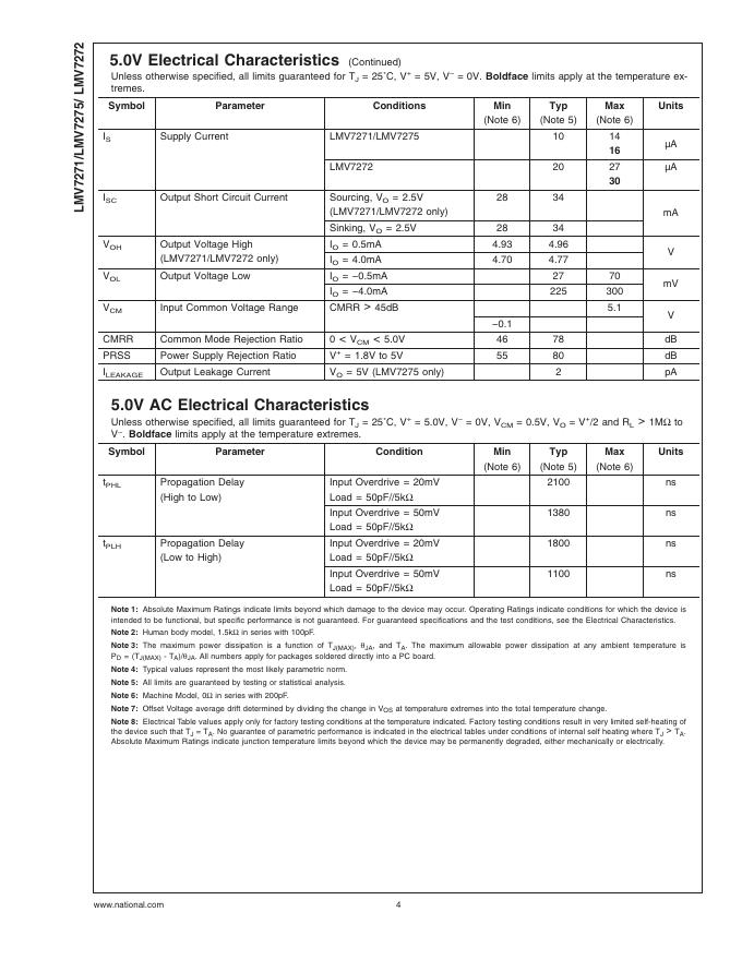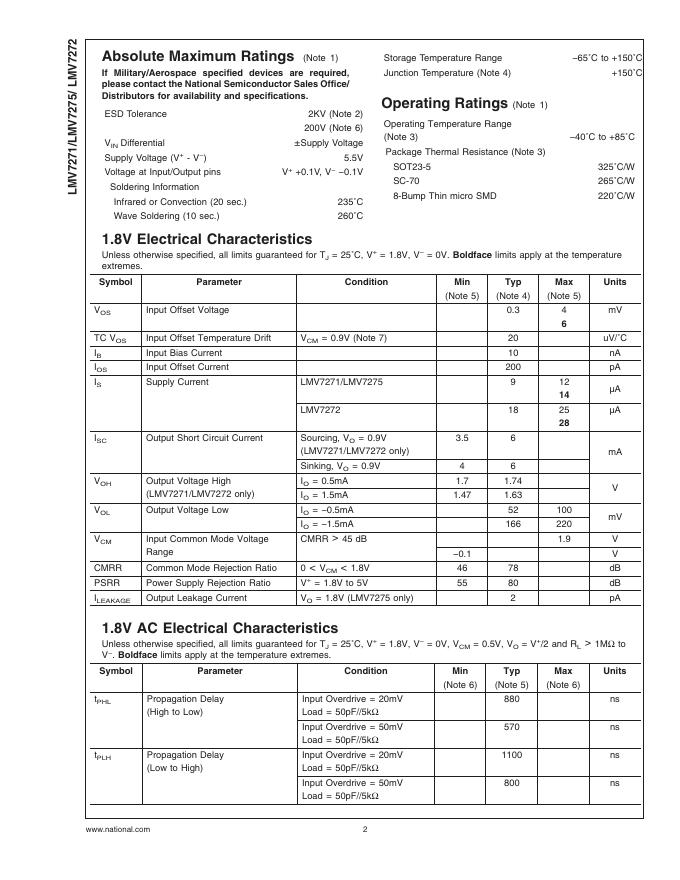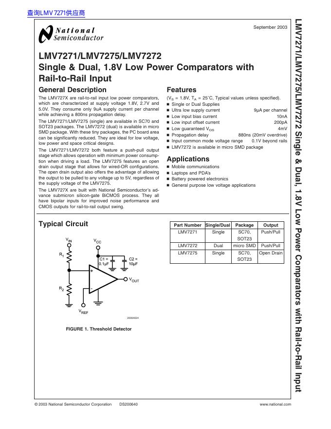 National semiconductor LMV7271/LMV7275/LMV7272 Single & Dual, 1.8V Low Power Comparators with Rail-to-Rail Input 数据手册.pdf