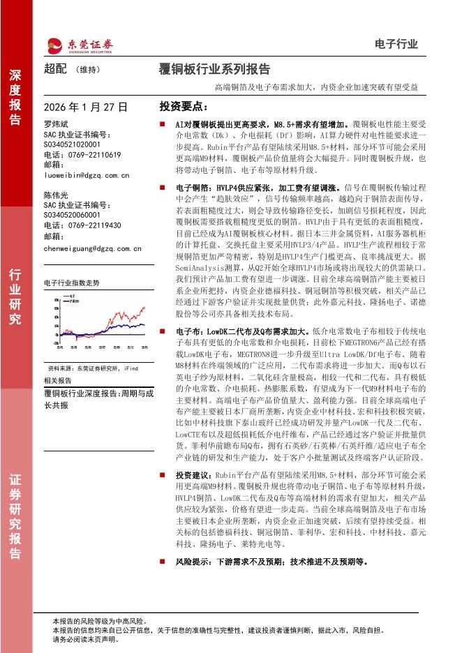 东莞证券:覆铜板行业系列报告:高端铜箔及电子布需求加大,内资企业加速突破有望受益.pdf