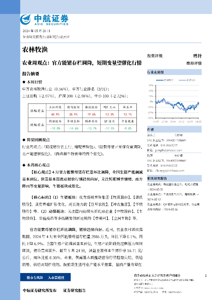 中航证券:农业周观点:官方能繁存栏调降,短期变量望催化行情.pdf