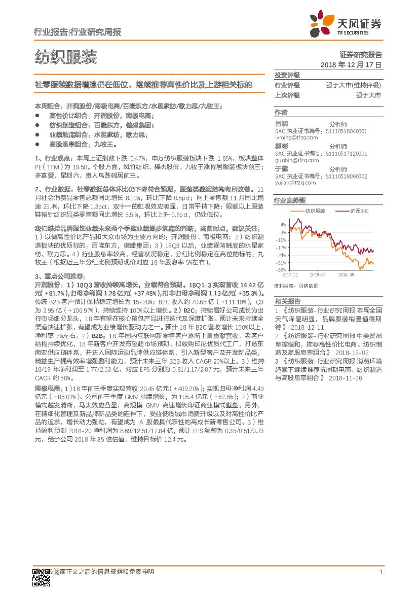 天风证券:纺织服装行业研究周报:社零服装数据增速仍在低位,继续推荐高性价比及上游相关标的.pdf