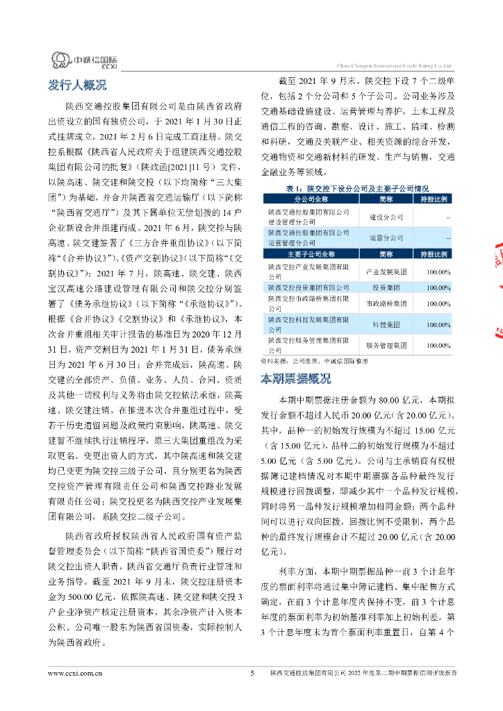 中诚信:陕西交通控股集团有限公司2022年度第二期中期票据信用评级报告.pdf