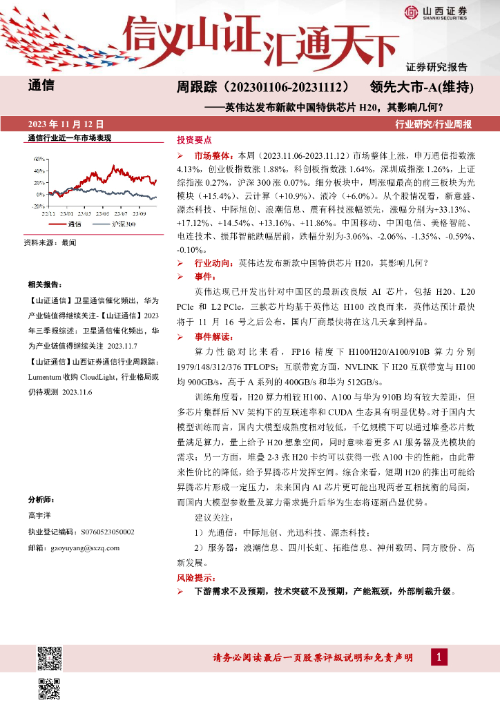 山西证券:通信周跟踪:英伟达发布新款中国特供芯片H20,其影响几何?.pdf