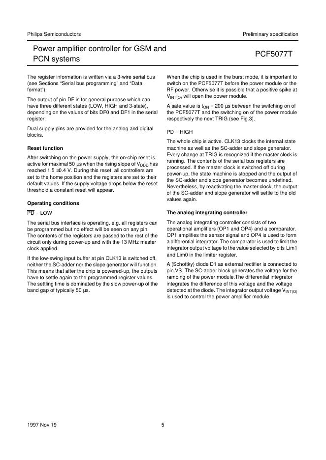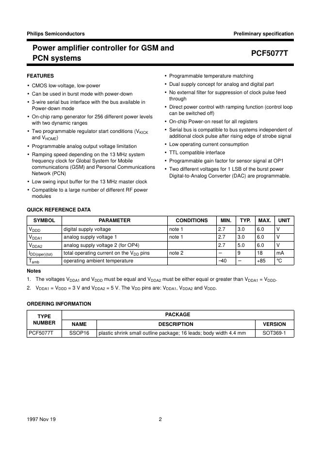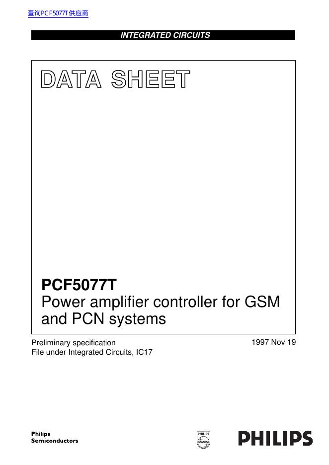 PHILIPS PCF5077T Power amplifier controller for GSM and PCN systems 数据手册.pdf
