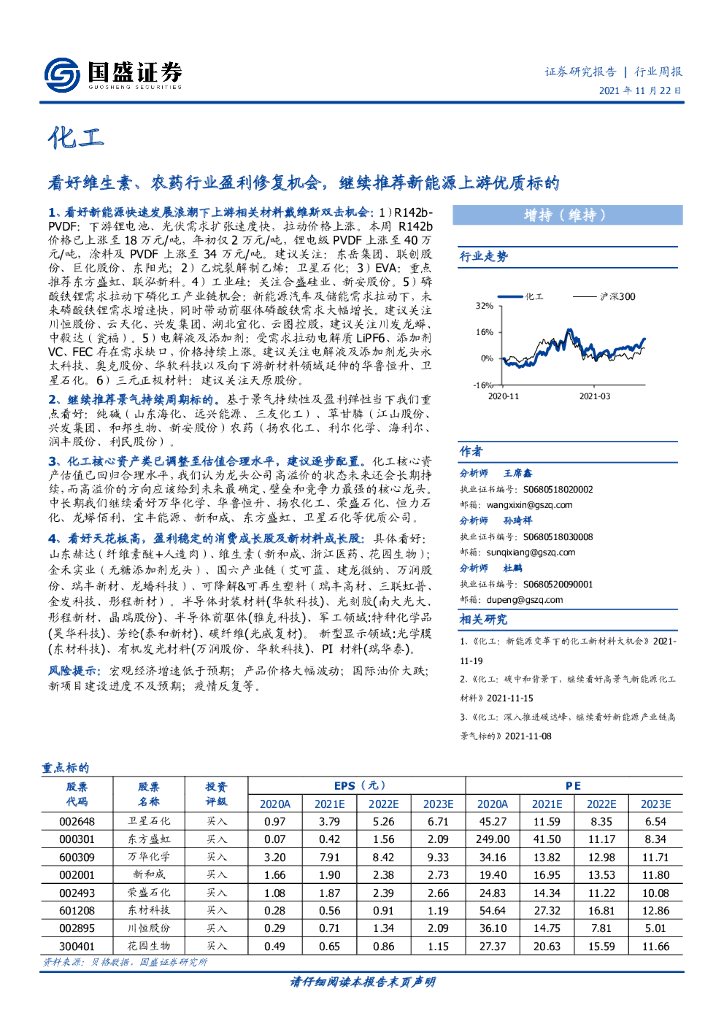 国盛证券:化工行业周报:看好维生素、农药行业盈利修复机会,继续推荐新能源上游优质标的.pdf
