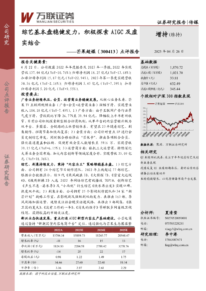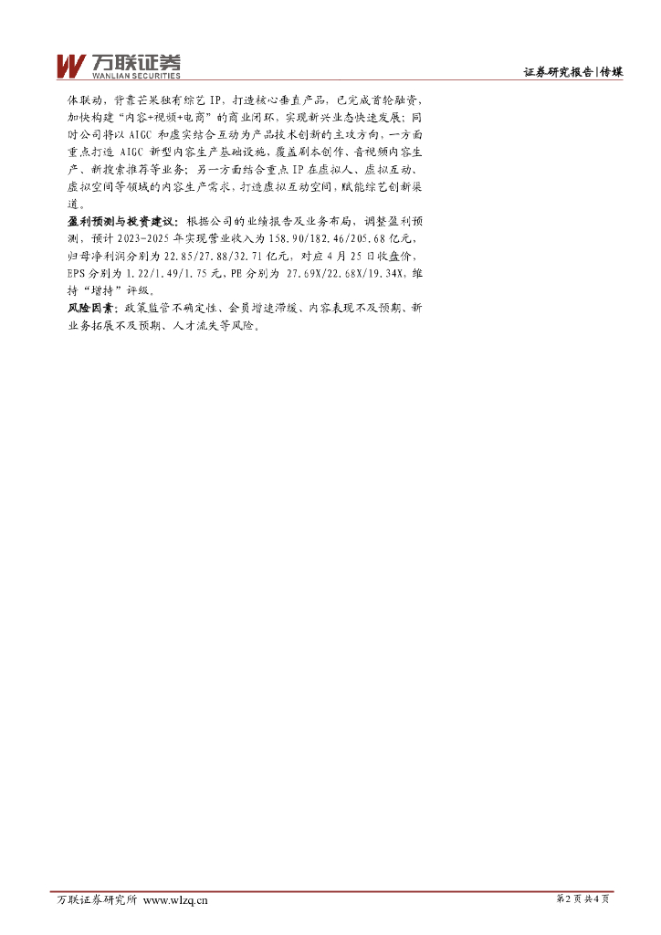 万联证券:芒果超媒(300413)-点评报告:综艺基本盘稳健发力,积极探索AIGC及虚实结合.pdf