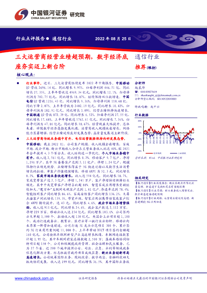中国银河:通信行业:三大运营商经营业绩超预期,数字经济底座夯实迈上新台阶.pdf