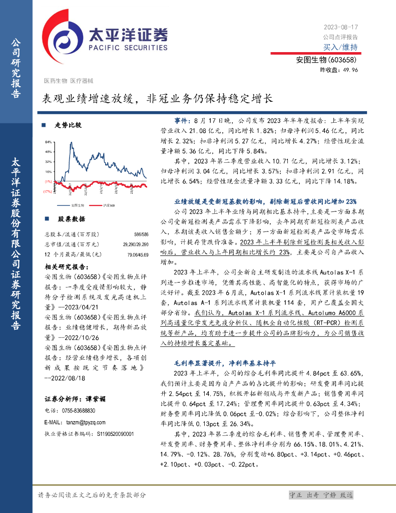 太平洋证券:安图生物(603658)-表观业绩增速放缓,非冠业务仍保持稳定增长.pdf