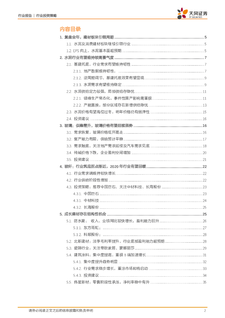 天风证券:建筑材料行业2020年度投资策略:格局稳定,坚守核心.pdf