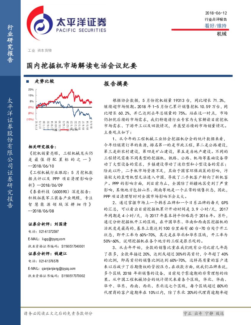 太平洋证券:机械行业点评报告:国内挖掘机市场解读电话会议纪要.pdf