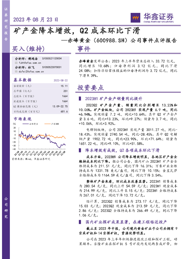 华鑫证券:赤峰黄金(600988)-公司事件点评报告:矿产金降本增效,Q2成本环比下滑.pdf