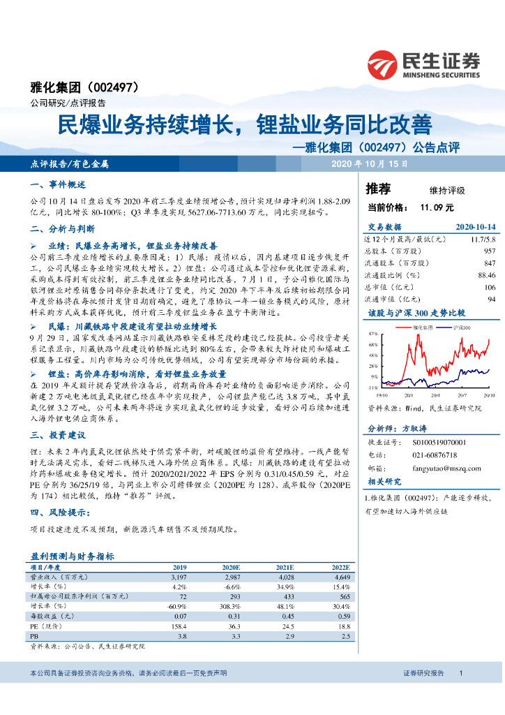 民生证券:雅化集团(002497)-公告点评:民爆业务持续增长,锂盐业务同比改善.pdf