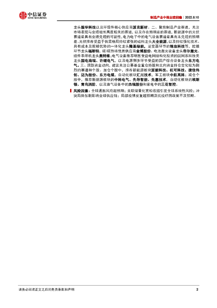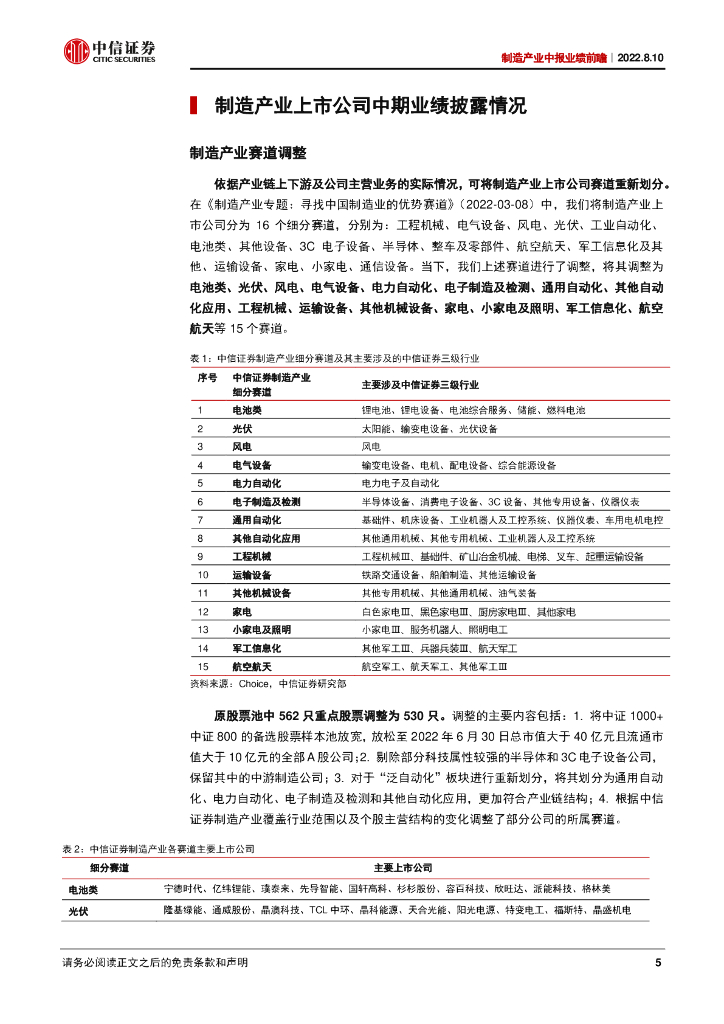 中信证券:制造产业2022年中报业绩前瞻:业绩整体稳定,光伏高增长,电气设备超预期.pdf