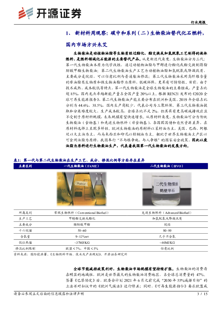 开源证券:新材料行业周报-碳中和系列二:生物柴油替代化石燃料,国内市场方兴未艾.pdf