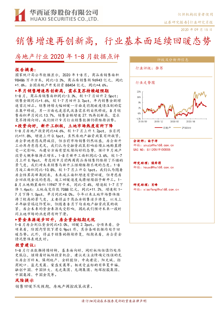 华西证券:房地产行业2020年1-8月数据点评:销售增速再创新高,行业基本面延续回暖态势.pdf