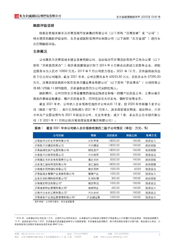 东方金诚:沂南县城市发展集团有限公司主体及“22沂南城发债22沂南债”2022年度跟踪评级报告.pdf