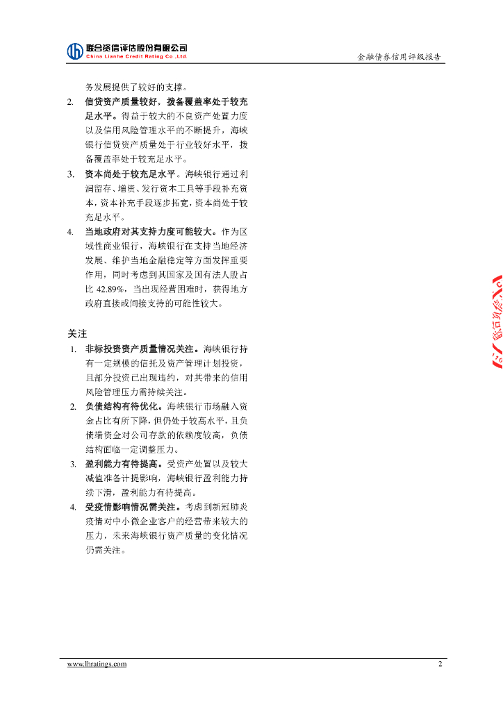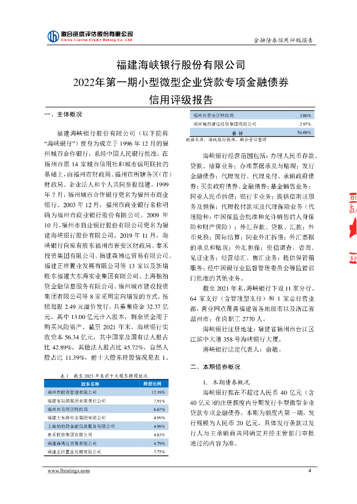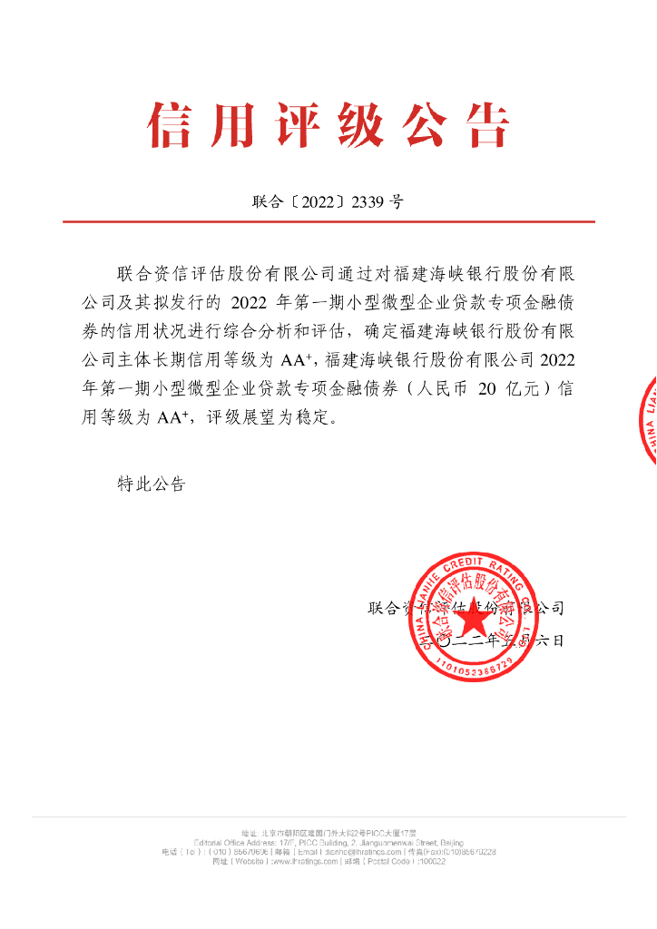 联合资信:福建海峡银行股份有限公司2022年第一期小型微型企业贷款专项金融债券信用评级报告及跟踪评级安排说明.pdf