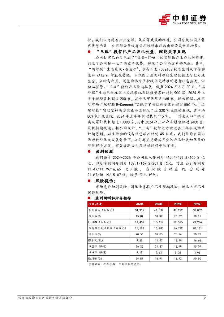 中邮证券:迈瑞医疗(300760)-业绩保持稳健增长,数智化赋能效果显现2024年上半年业绩承压前行,归母净利润增速达17.4%.pdf
