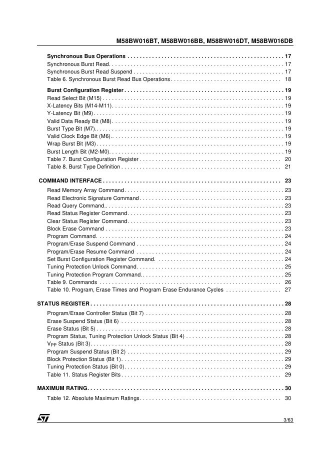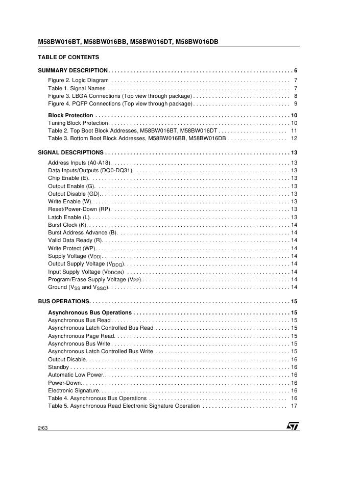 ST M58BW016BT, M58BW016BB M58BW016DT, M58BW016DB 16 Mbit (512Kb x32, Boot Block, Burst) 3V Supply Flash Memories 数据手册.pdf