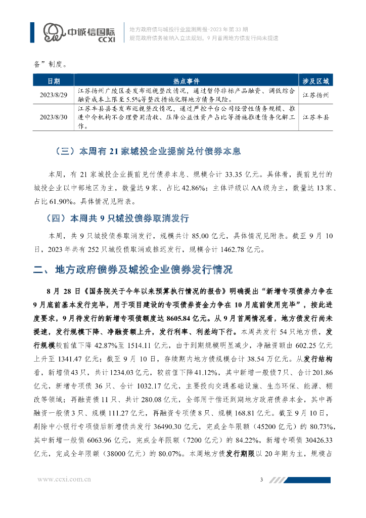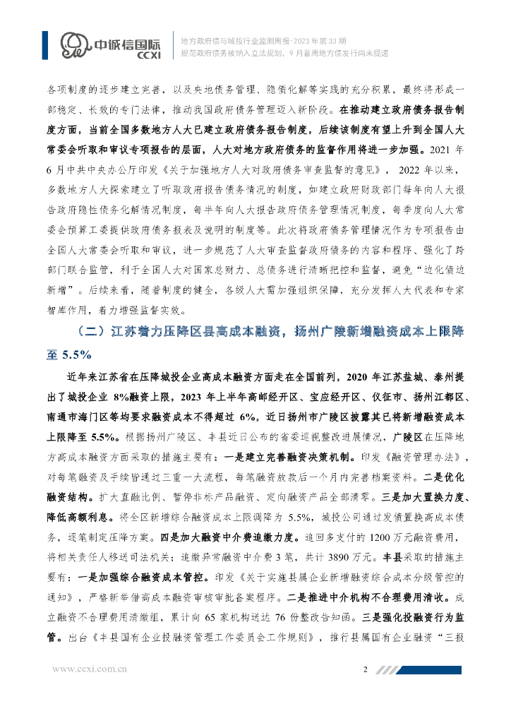 中诚信国际:规范政府债务被纳入立法规划,9月首周地方债发行尚未提速.pdf