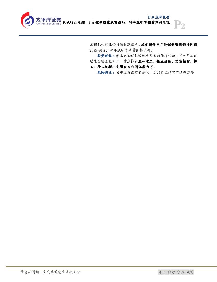 太平洋证券:工程机械行业跟踪:8月挖机销量表现强劲,对年底旺季销量保持乐观.pdf