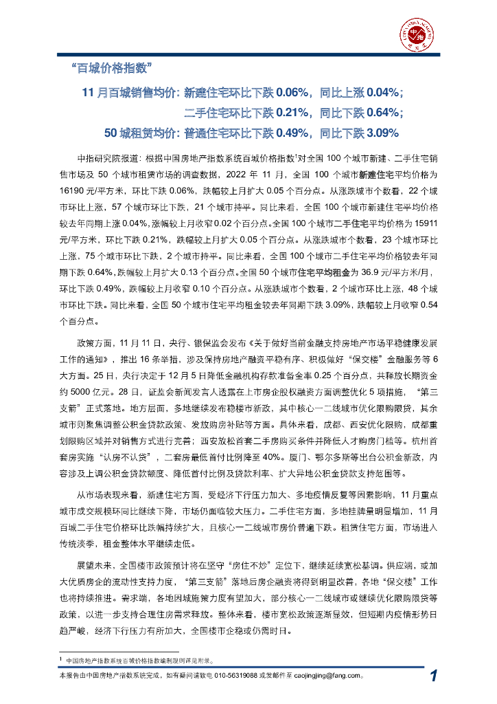 中国指数研究院:中国房地产指数系统百城价格指数报告(2022年11月).pdf