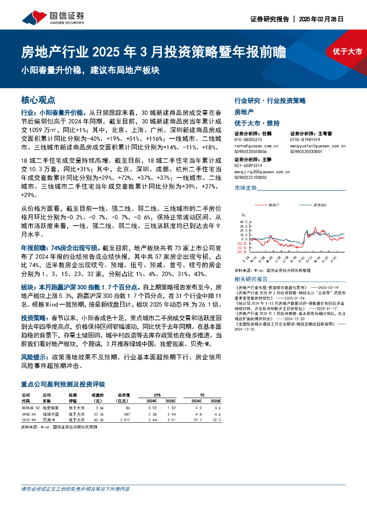 国信证券:房地产行业2025年3月投资策略暨年报前瞻:小阳春量升价稳,建议布局地产板块.pdf