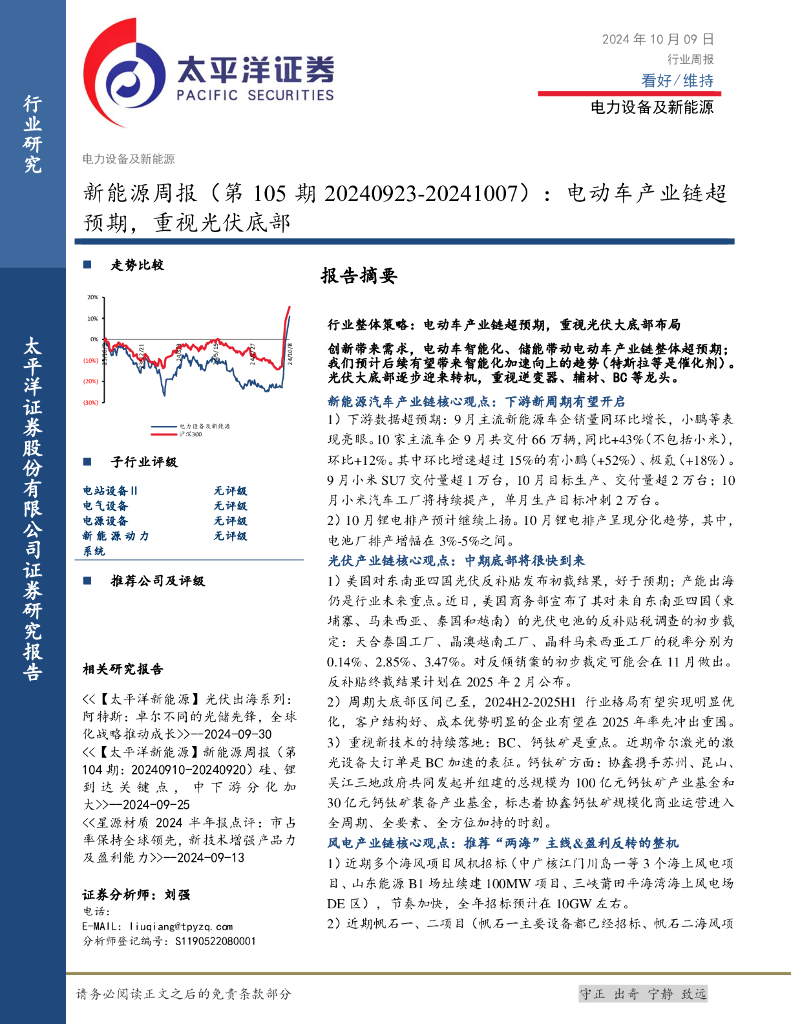 太平洋证券:新能源行业周报(第105期):电动车产业链超预期,重视光伏底部.pdf