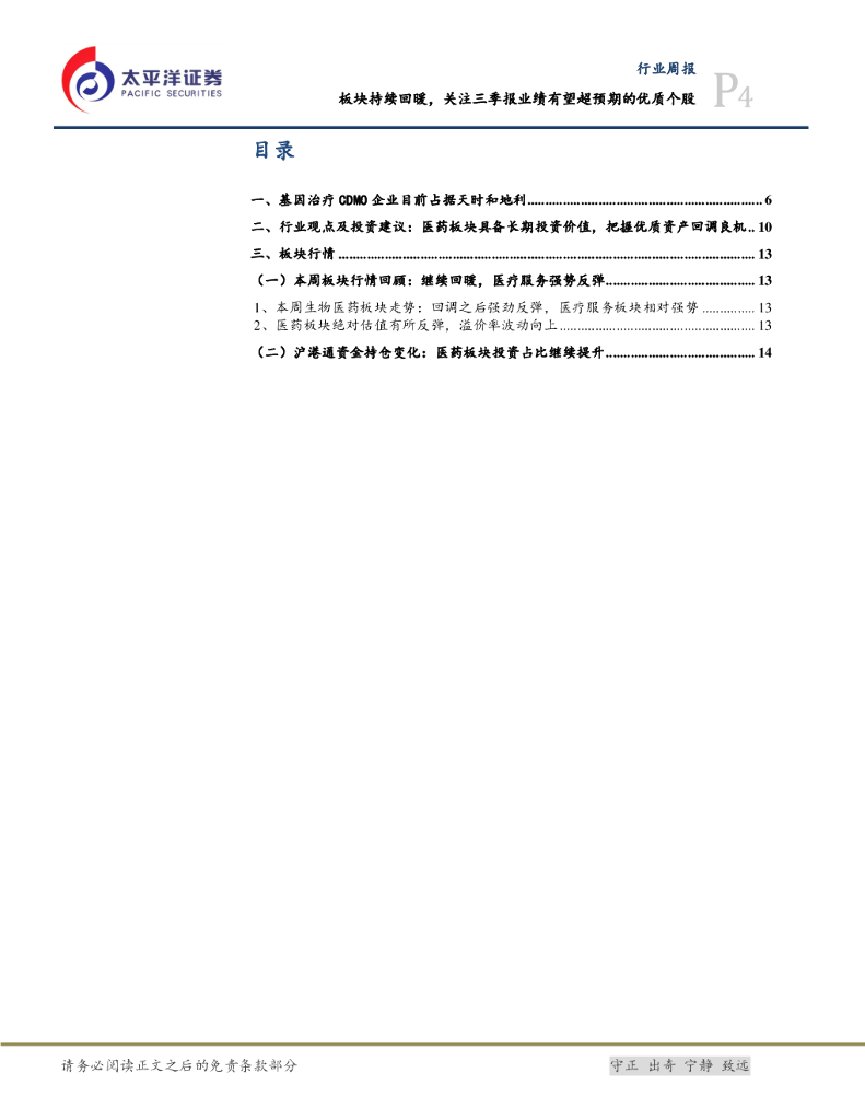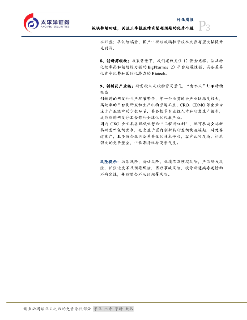 太平洋证券:医药周报:板块持续回暖,关注三季报有望超预期的优质标的.pdf