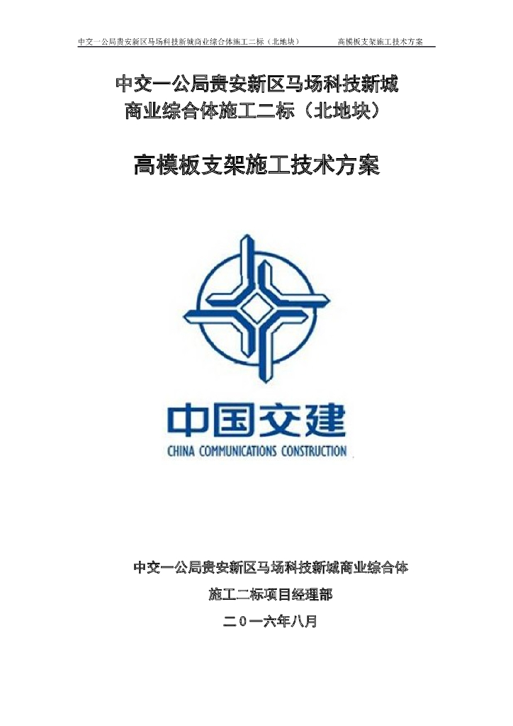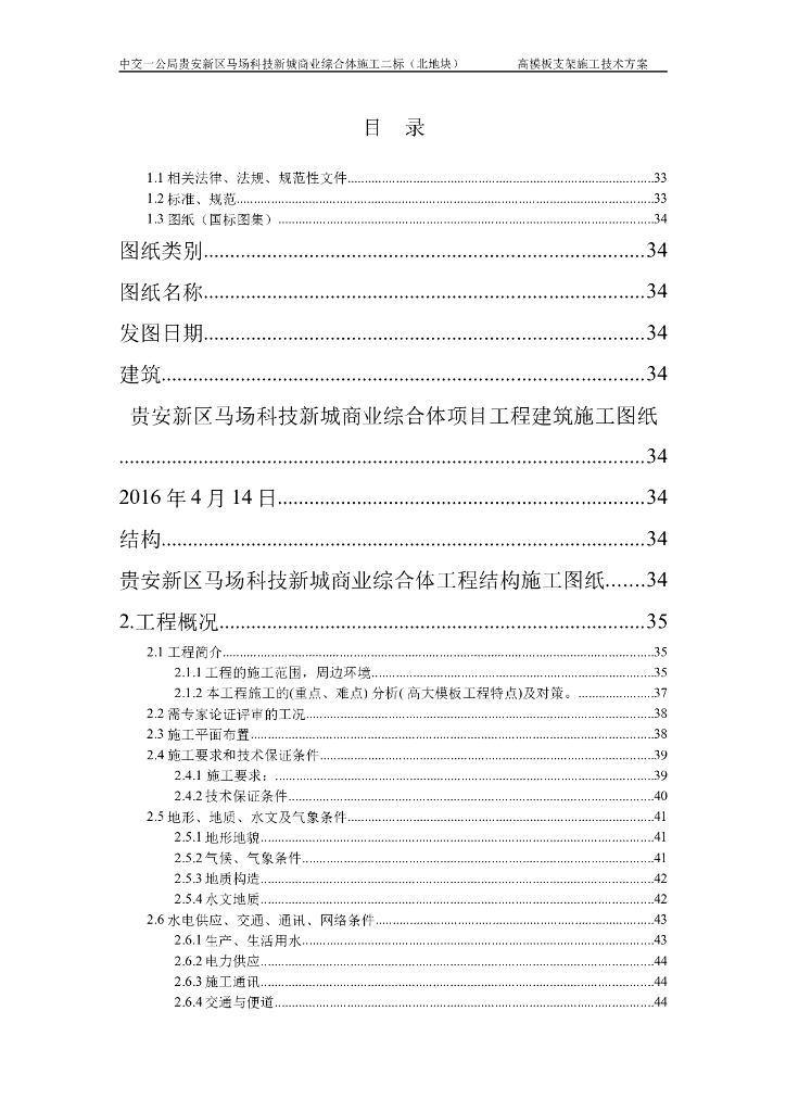 【贵安新区】马场科技新城商业综合体施工高模板支架施工技术方案(附CAD投影图及平面图).doc