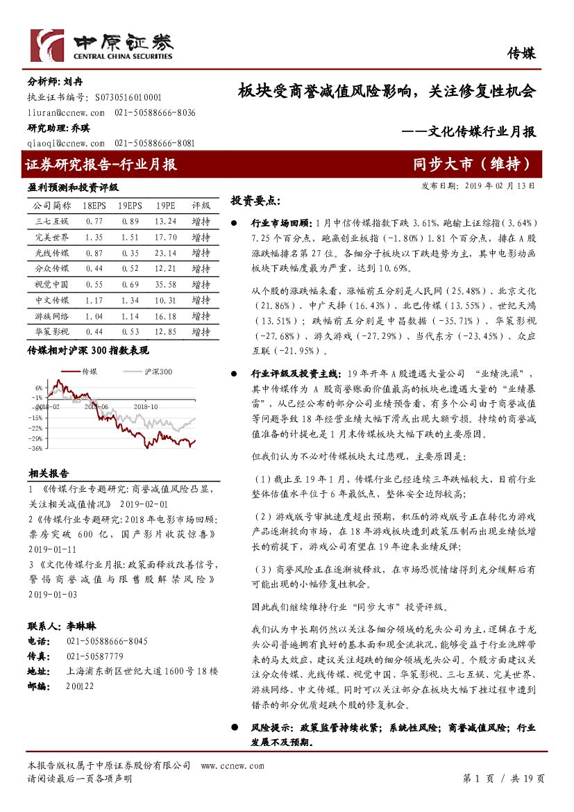 中原证券:文化传媒行业月报:板块受商誉减值风险影响,关注修复性机会.pdf