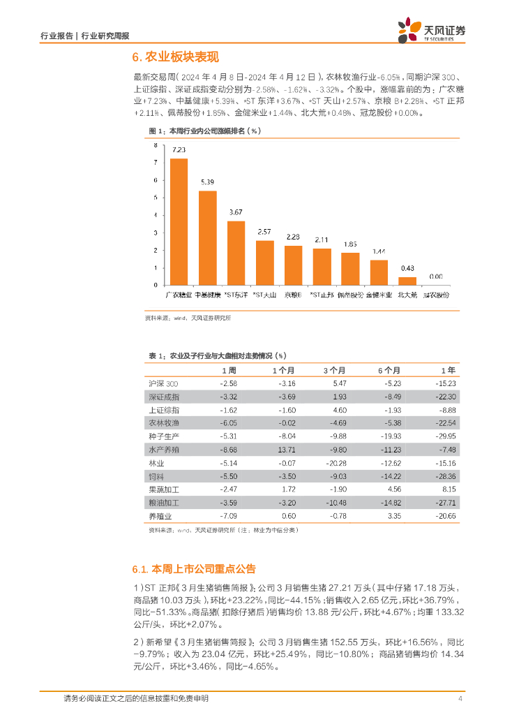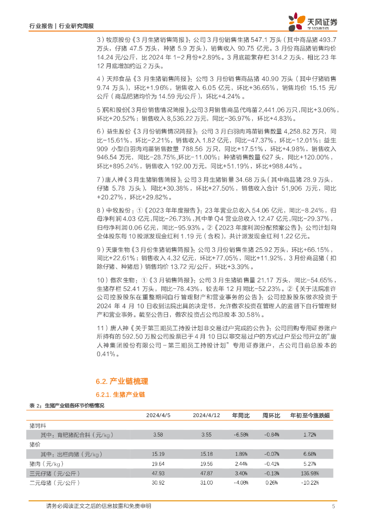 天风证券:农林牧渔行业2024年第14周周报:短期震荡不改猪价反转趋势,重视生猪大周期.pdf