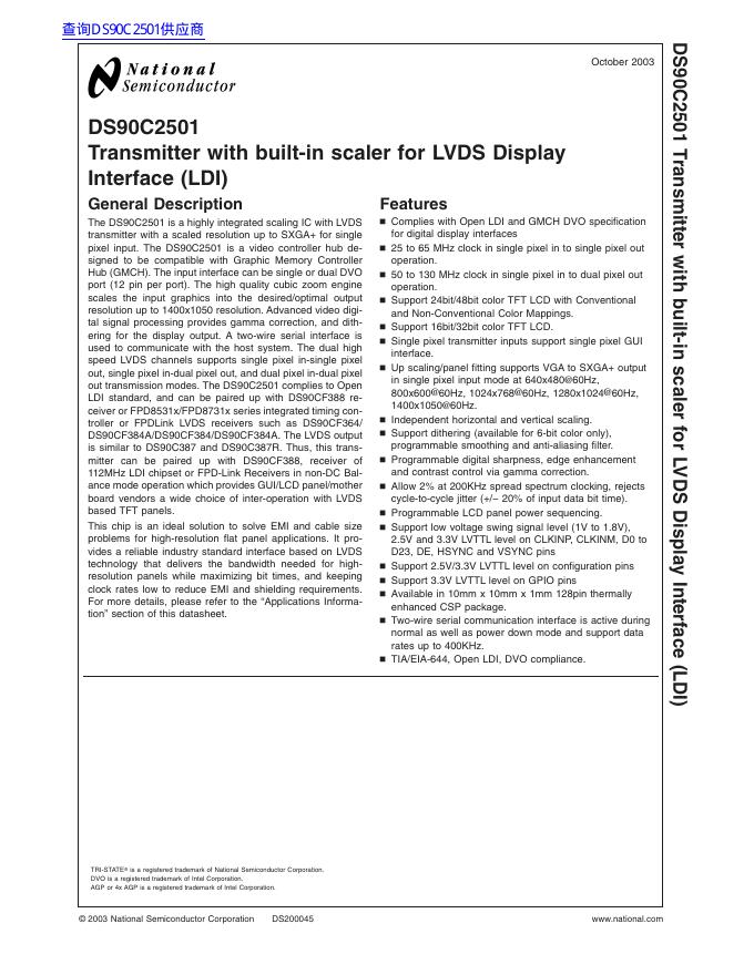 NATIONAL SEMICONDUCTOR - May 27, 2008 DS15BA101 1.5 Gbps Differential Buffer with Adjustable Output Voltage General 说明书
