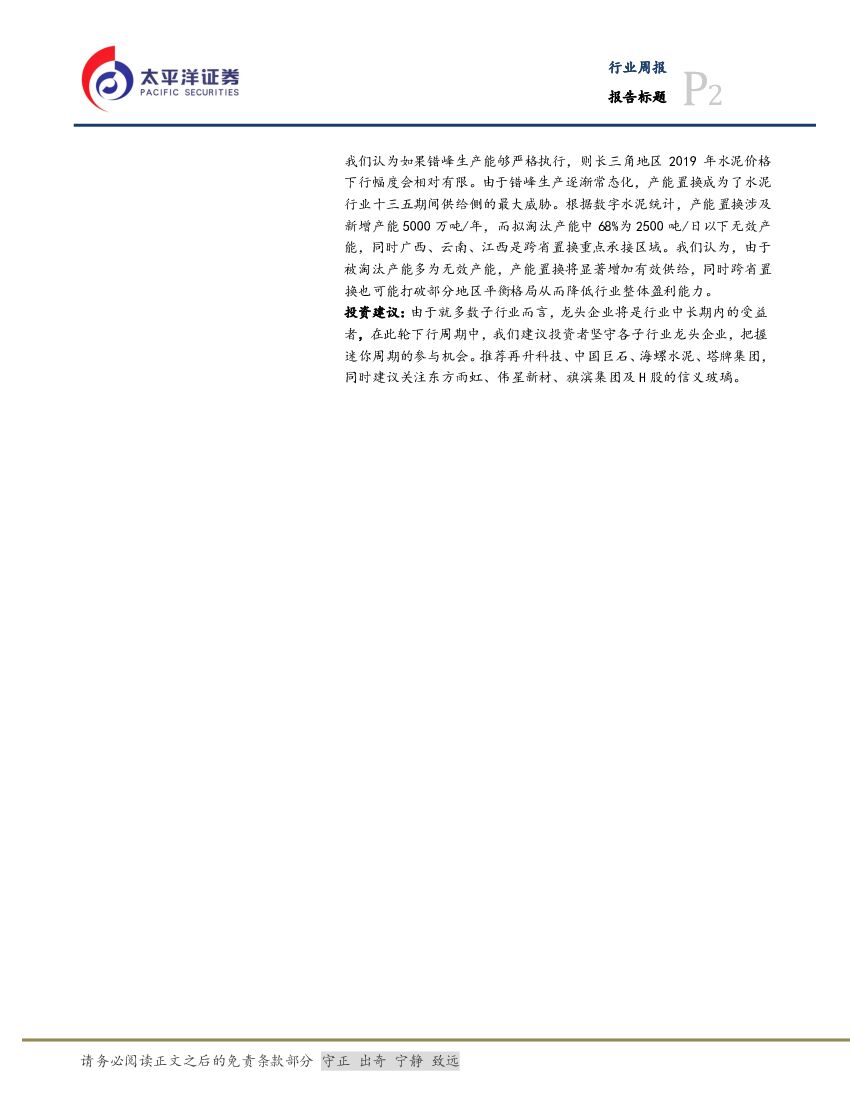 太平洋证券:建材行业周报:水泥玻璃价格如期回落,产能置换渐成重大威胁.pdf