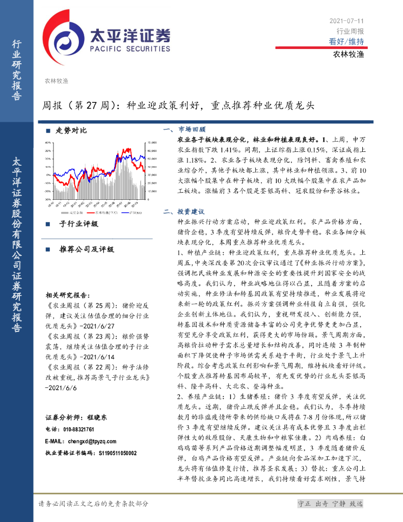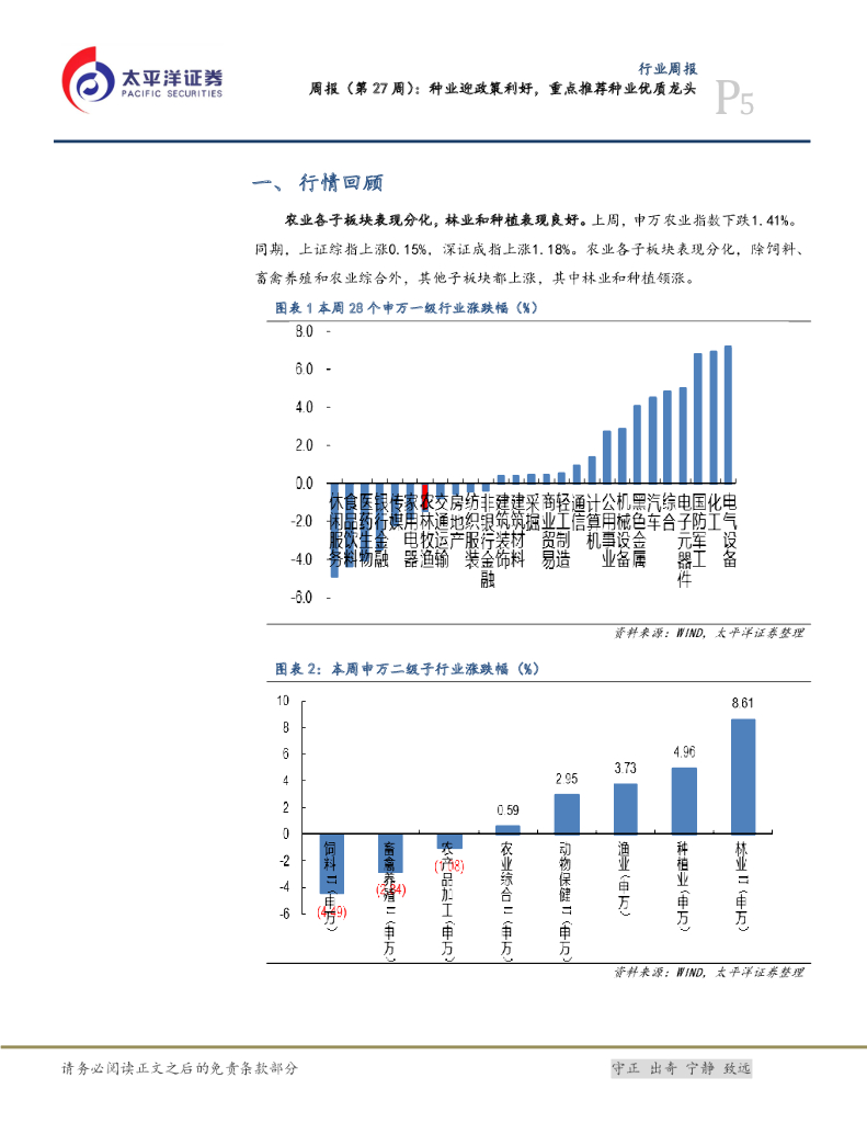 太平洋证券:农林牧渔周报(第27周):种业迎政策利好,重点推荐种业优质龙头.pdf