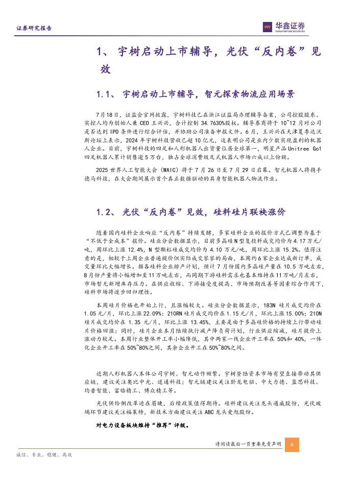 华鑫证券:电力设备行业周报:宇树启动上市辅导,光伏“反内卷”见效.pdf