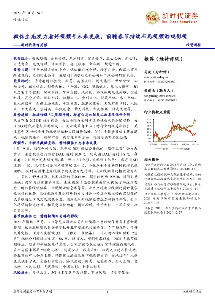 新时代证券:新时代传媒周报:微信生态发力看好视频号未来发展,前瞻春节持续布局视频游戏影视.pdf