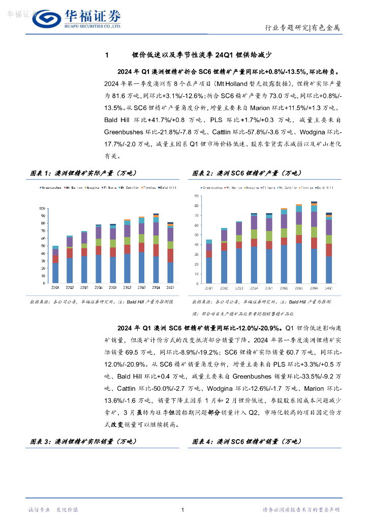 华福证券:2024Q1海外锂矿跟踪:Q1因锂价低迷海外锂矿供给环比下降,精矿价格行至底部.pdf