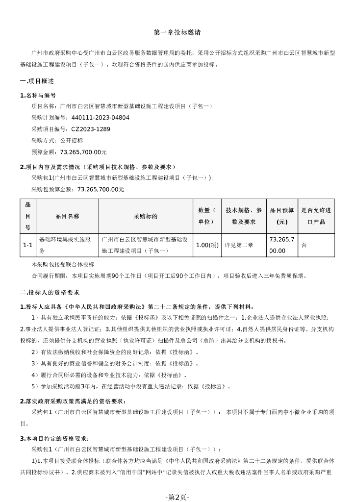 广州市白云区智慧城市新型基础设施工程建设项目(子包一)招标文件.pdf